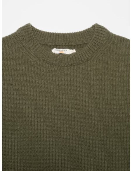 Suéter de lana acanalado , color oliva Nudie Jeans