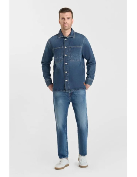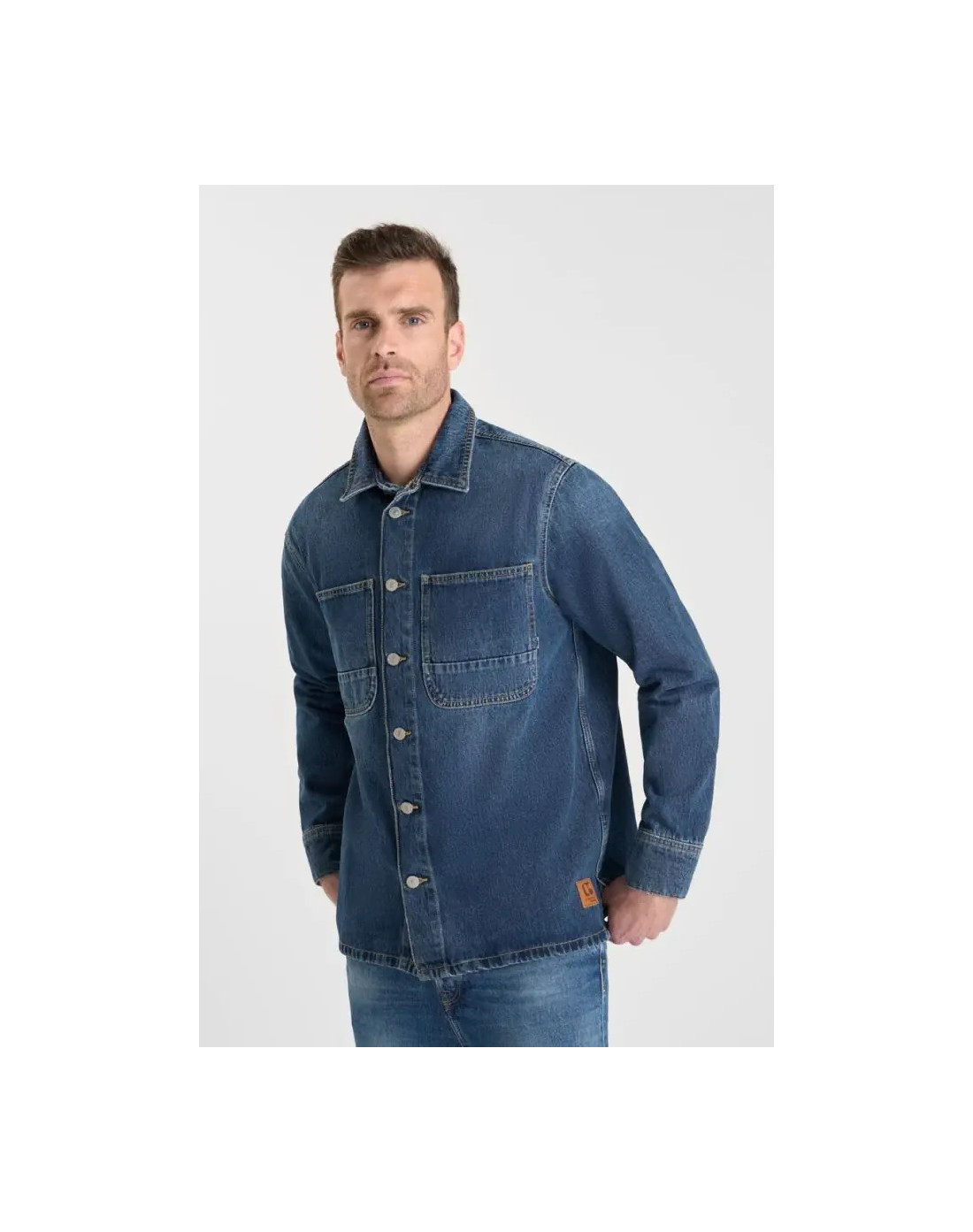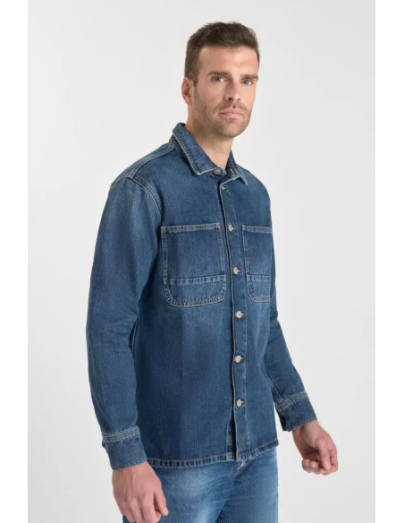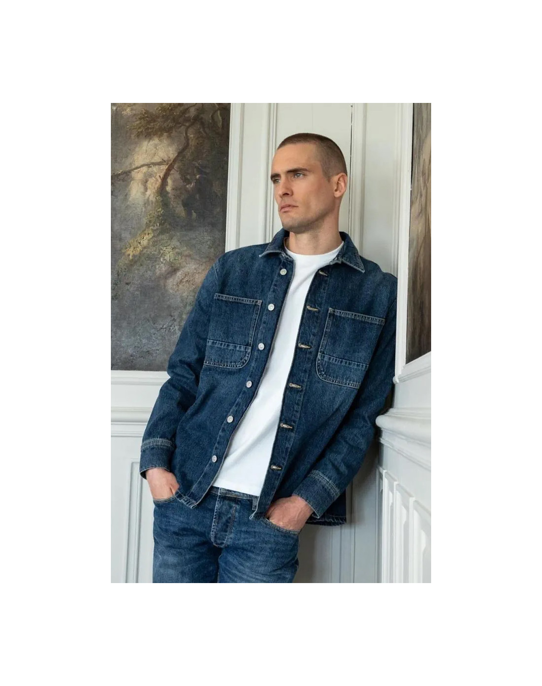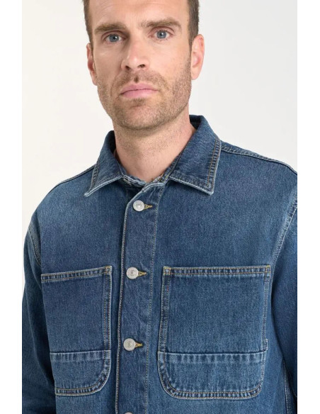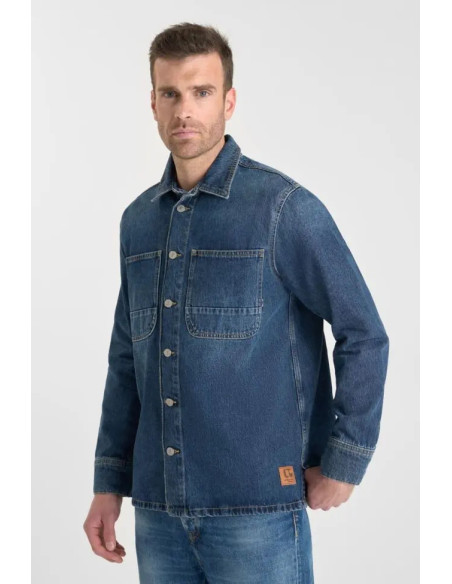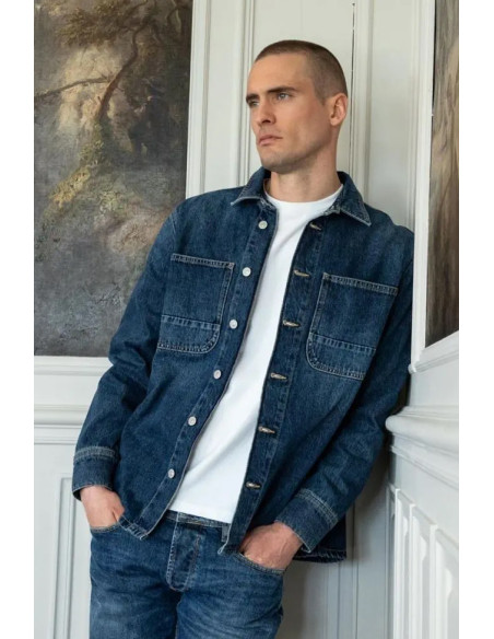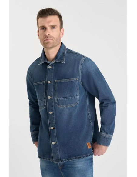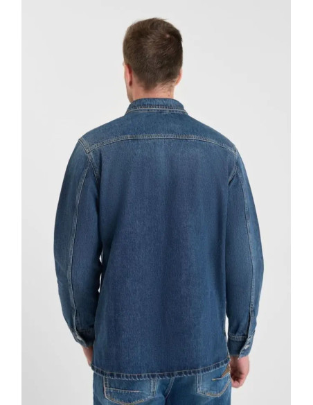 Chaqueta vaquera azul con grandes bolsillos de parche.