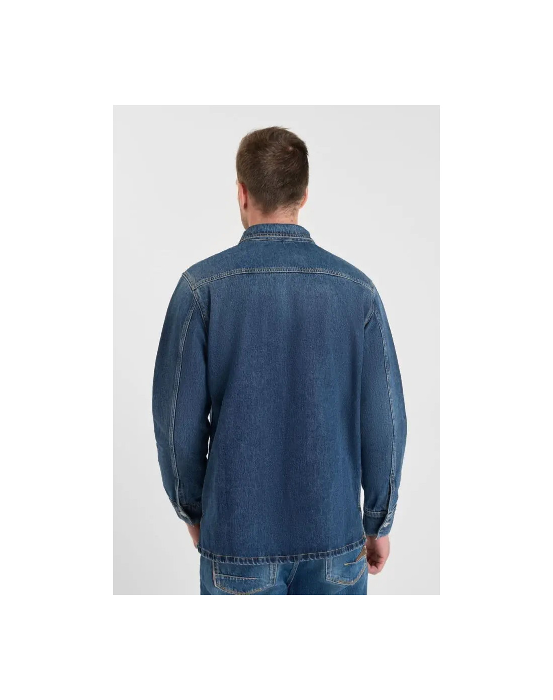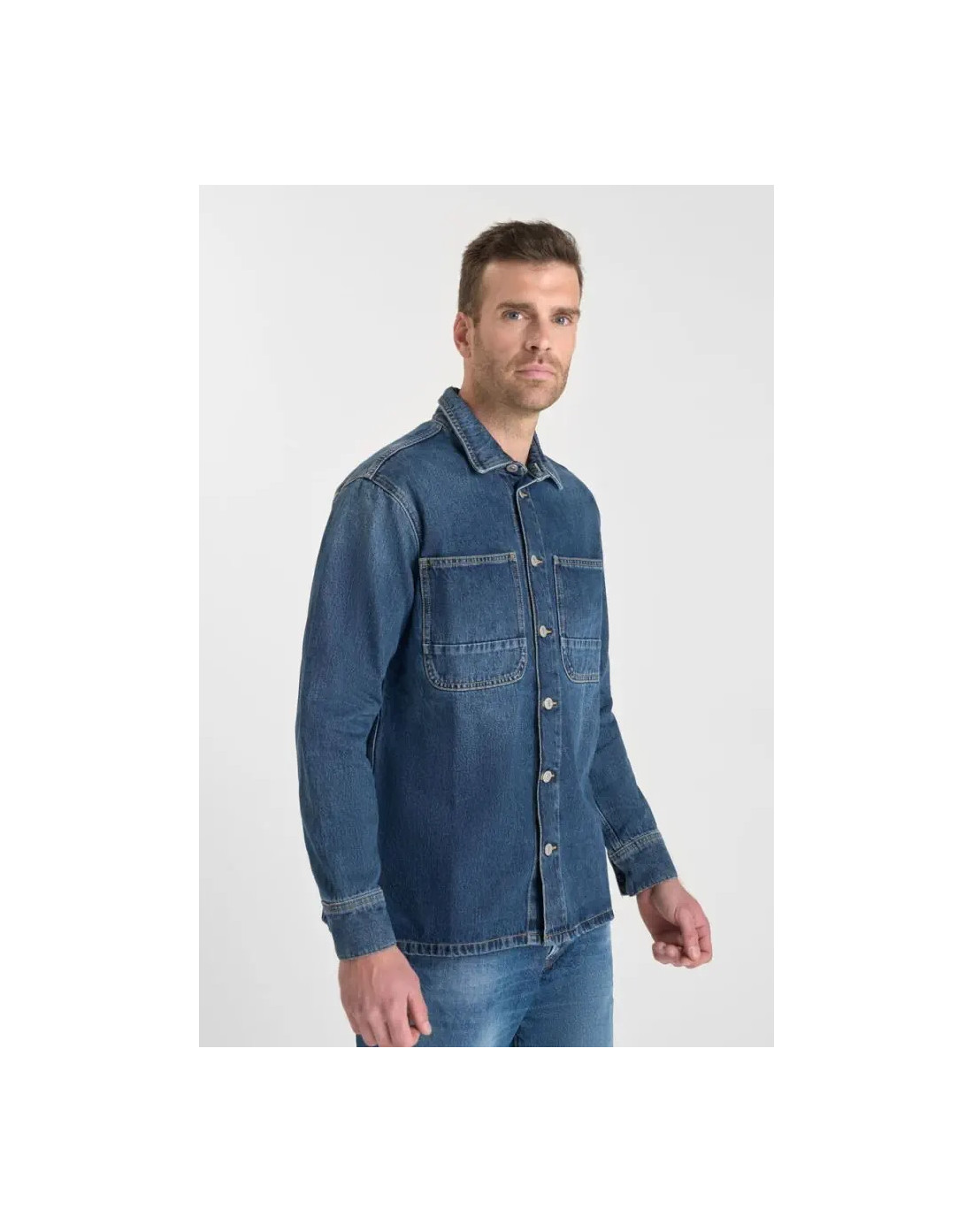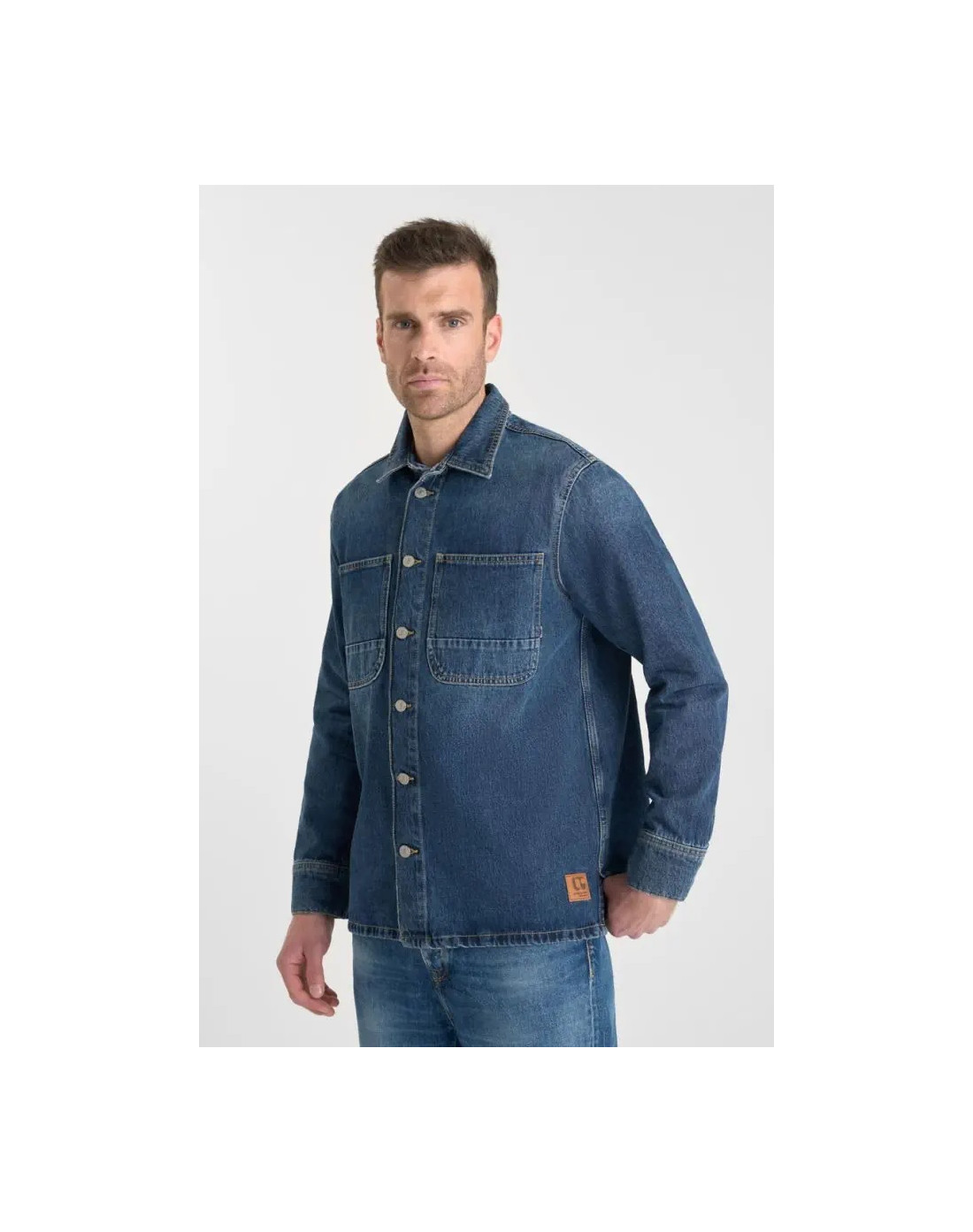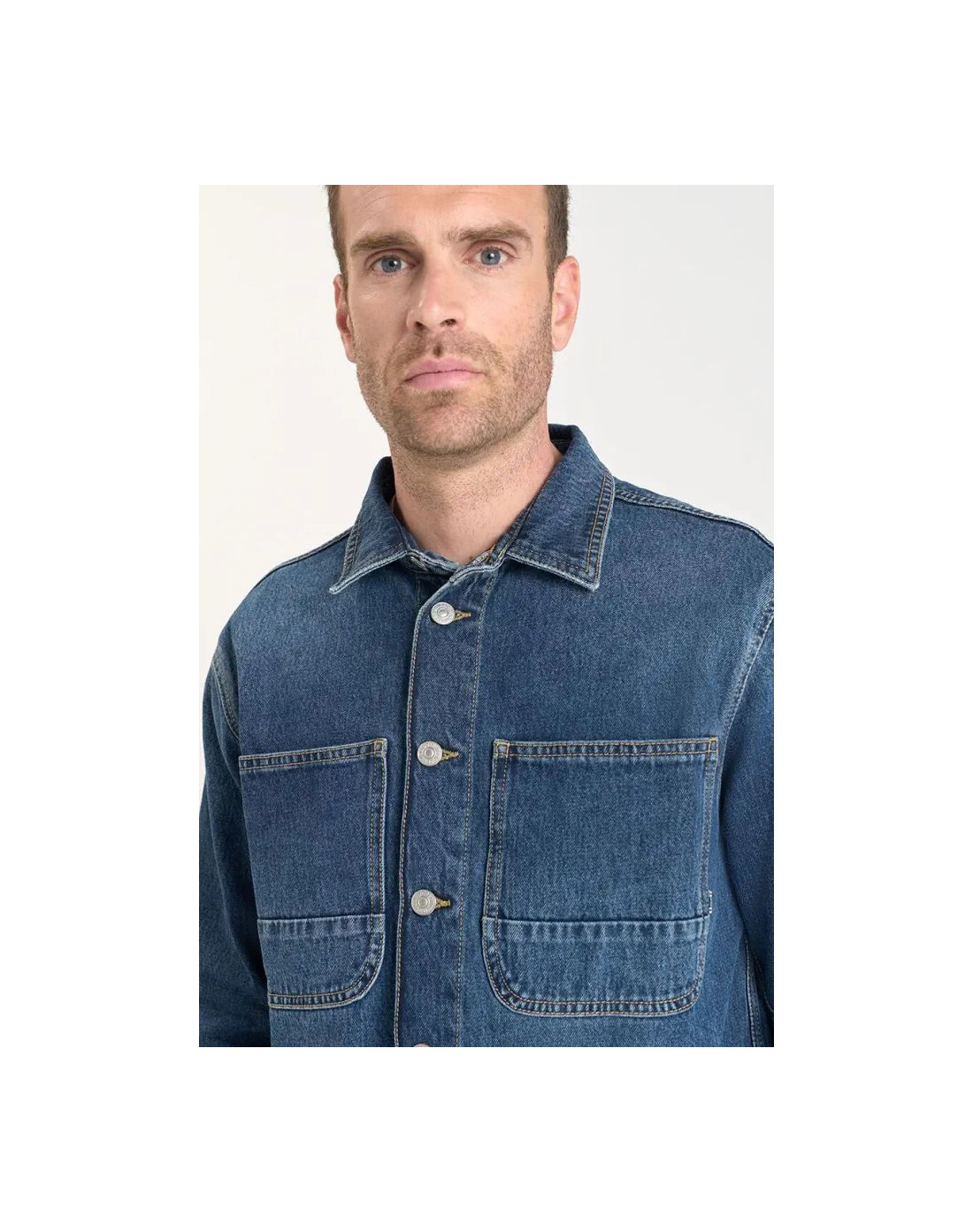Chaqueta vaquera azul con grandes bolsillos de parche.