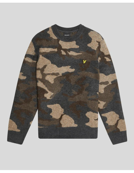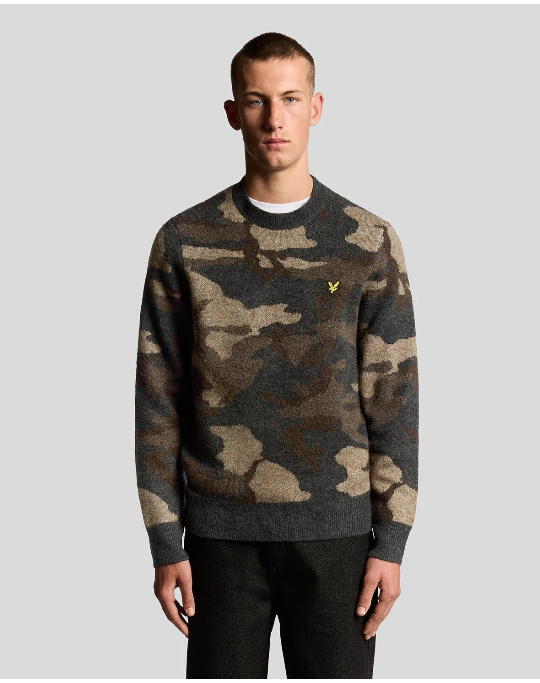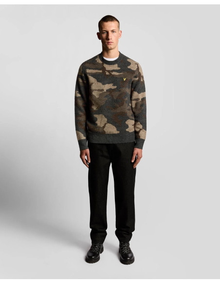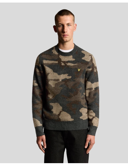 Jersey de cuello redondo con estampado de camuflaje cepillado Lyle and Scott