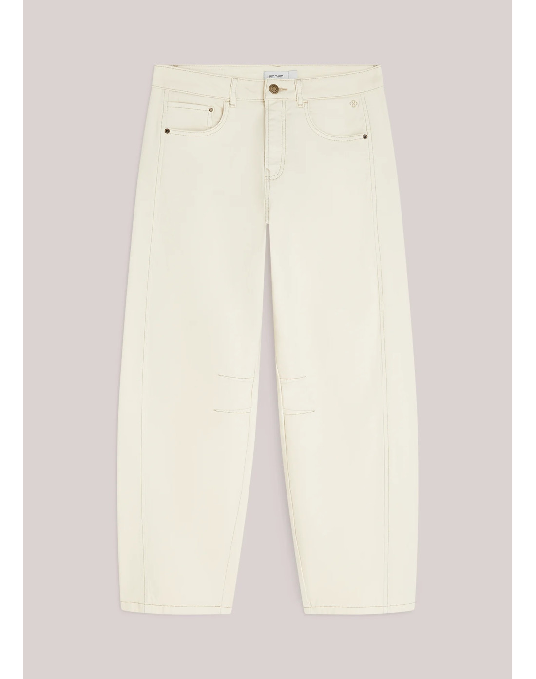 Pantalones de corte capullo en un cómodo tejido elástico con efecto lavado. Presentan dos costuras en las rodillas y un panel lateral moldeado para un ajuste redondeado y favorecedor.