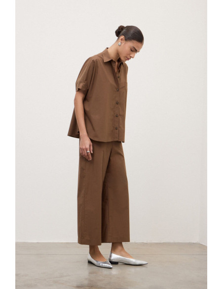 Pantalones cortos de popelina con una cintura elástica, diseñados para un ajuste práctico y contemporáneo. La longitud del tobillo y las líneas limpias crean una silueta contemporánea y ligera. Un estilo sencillo, ideal para completar los looks cotidianos con un ambiente veranieno.