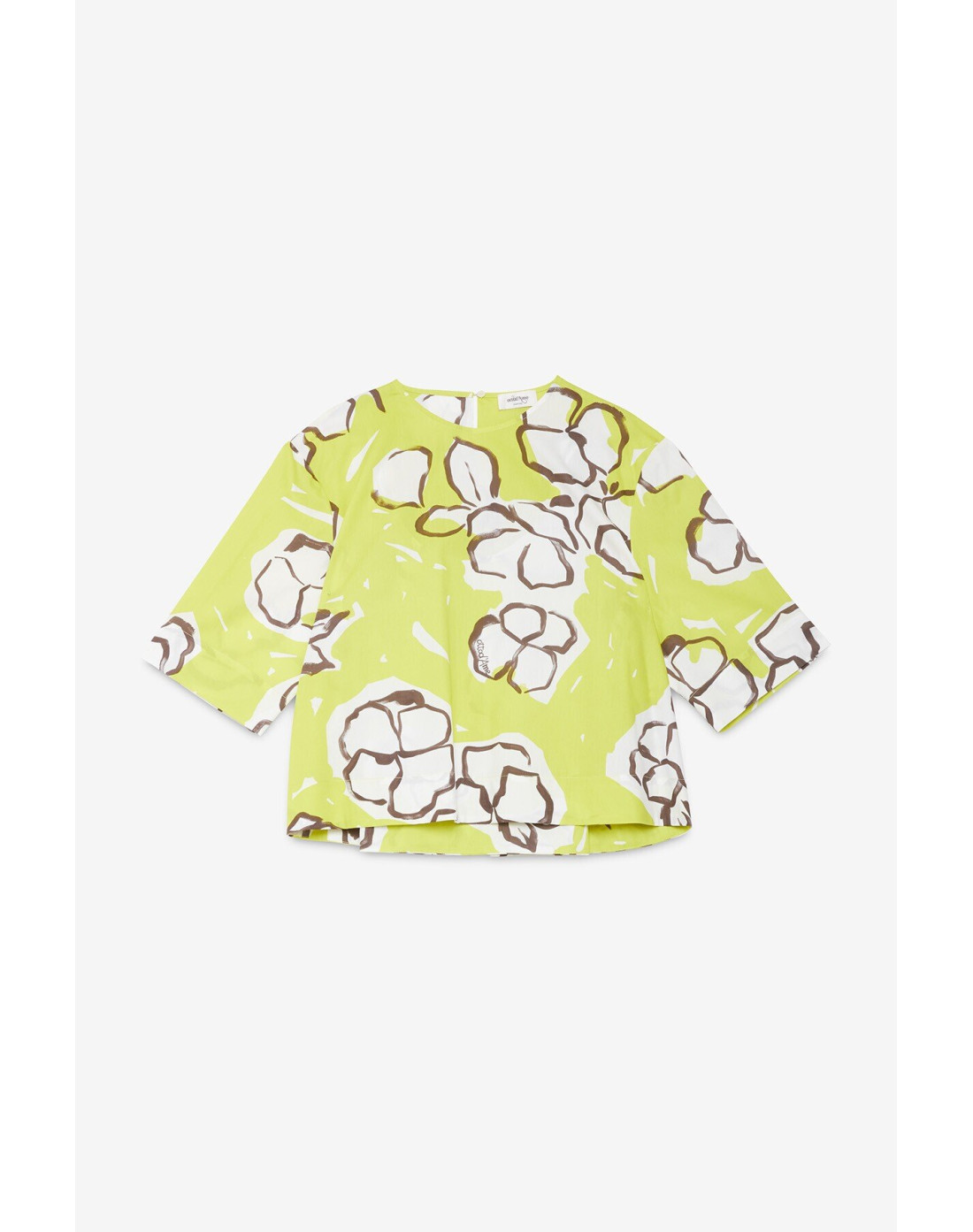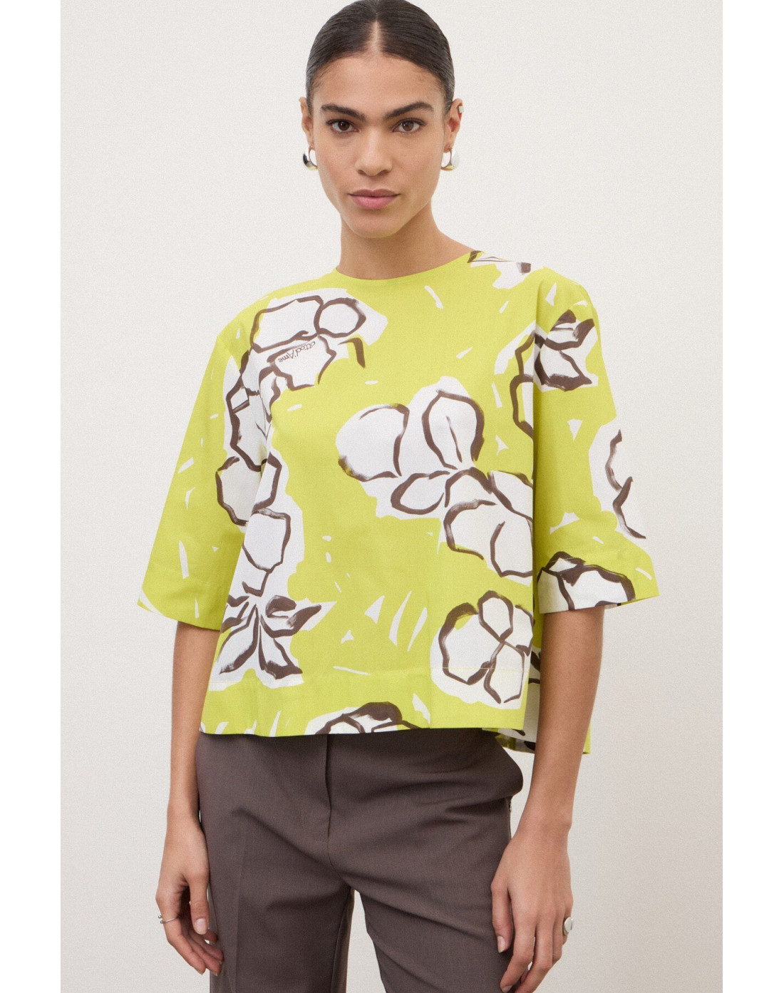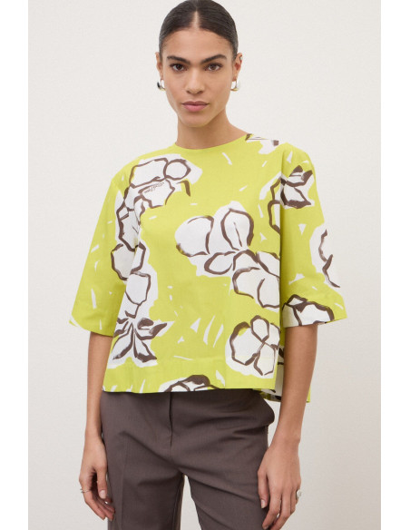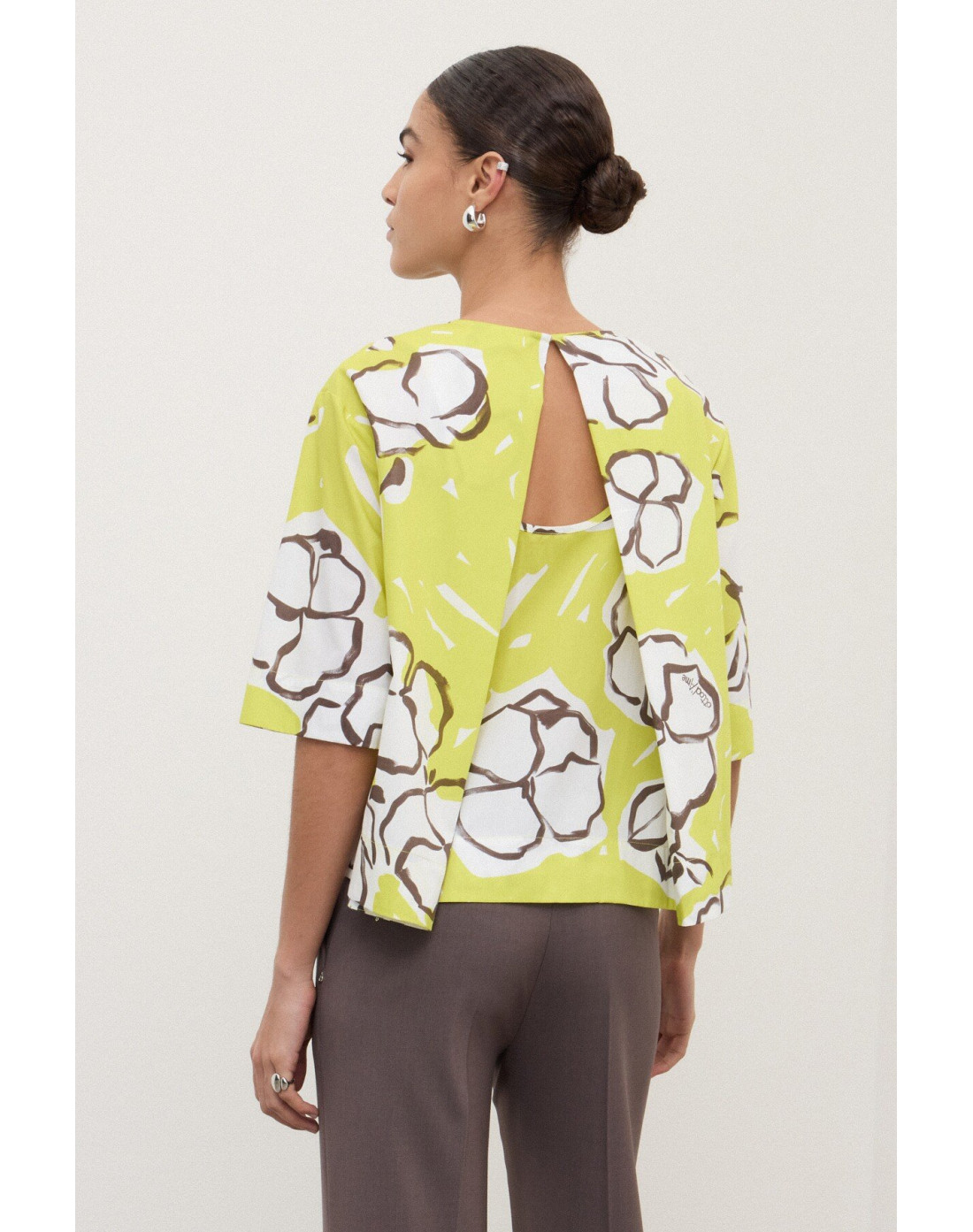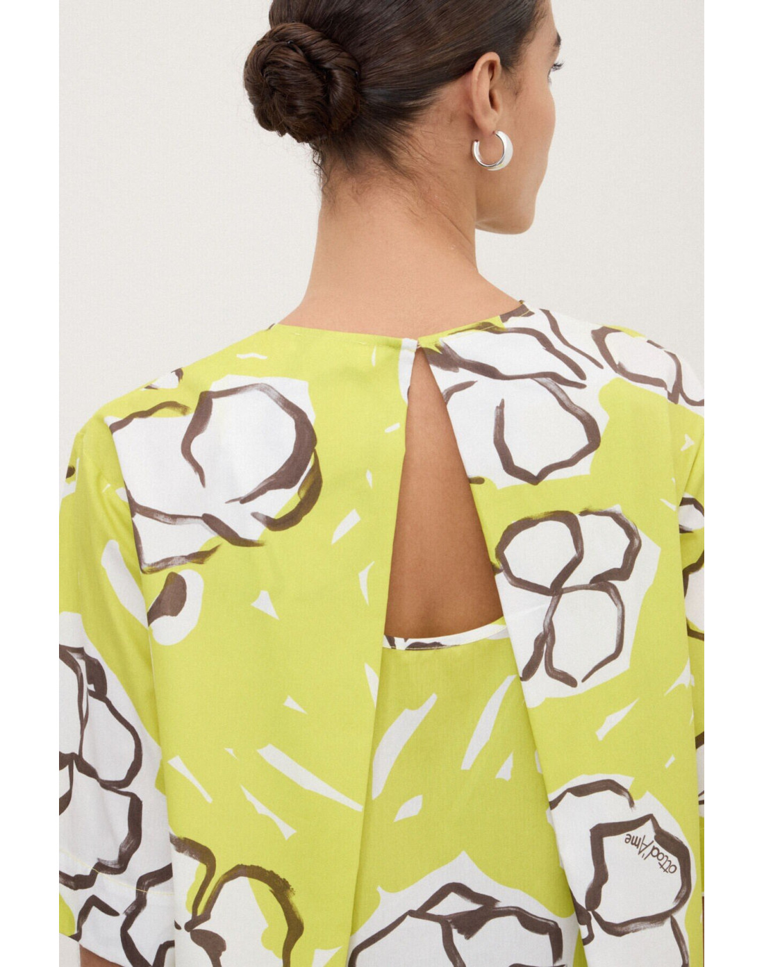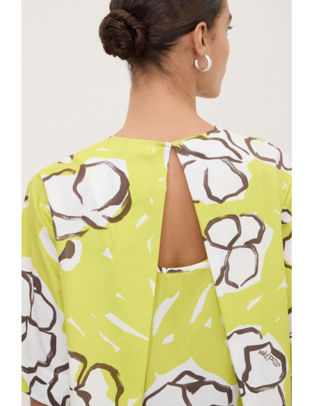 Blusa con espalda abierta Blusa de cuello redondo de popelina con mangas cortas y detalle de apertura en la espalda, con un estampado floral texturizado.