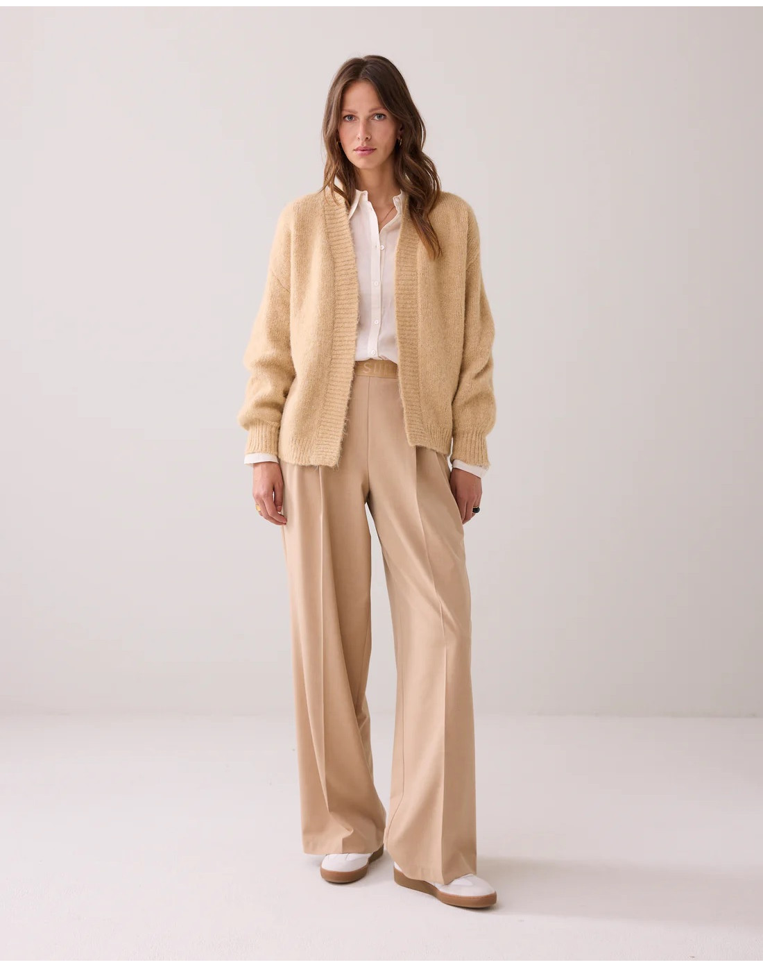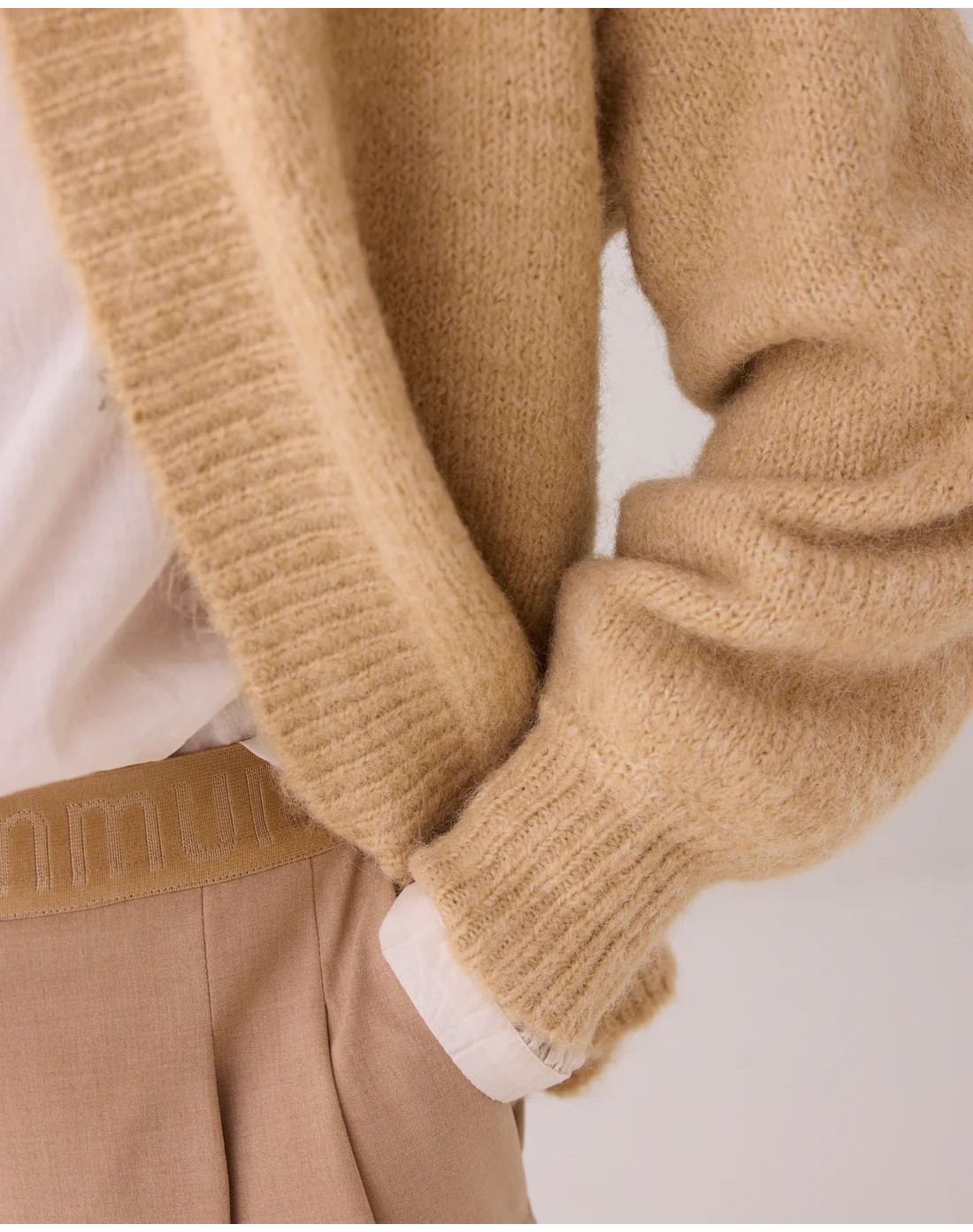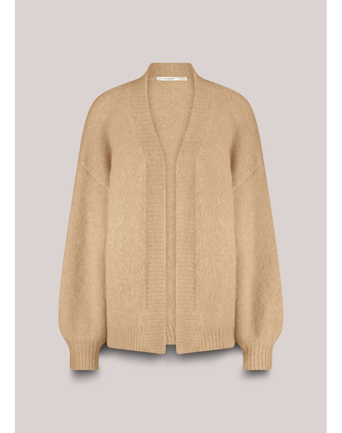 • Cárdigan abierto • Mangas abullonadas • Hilo suave • Puños acanalados