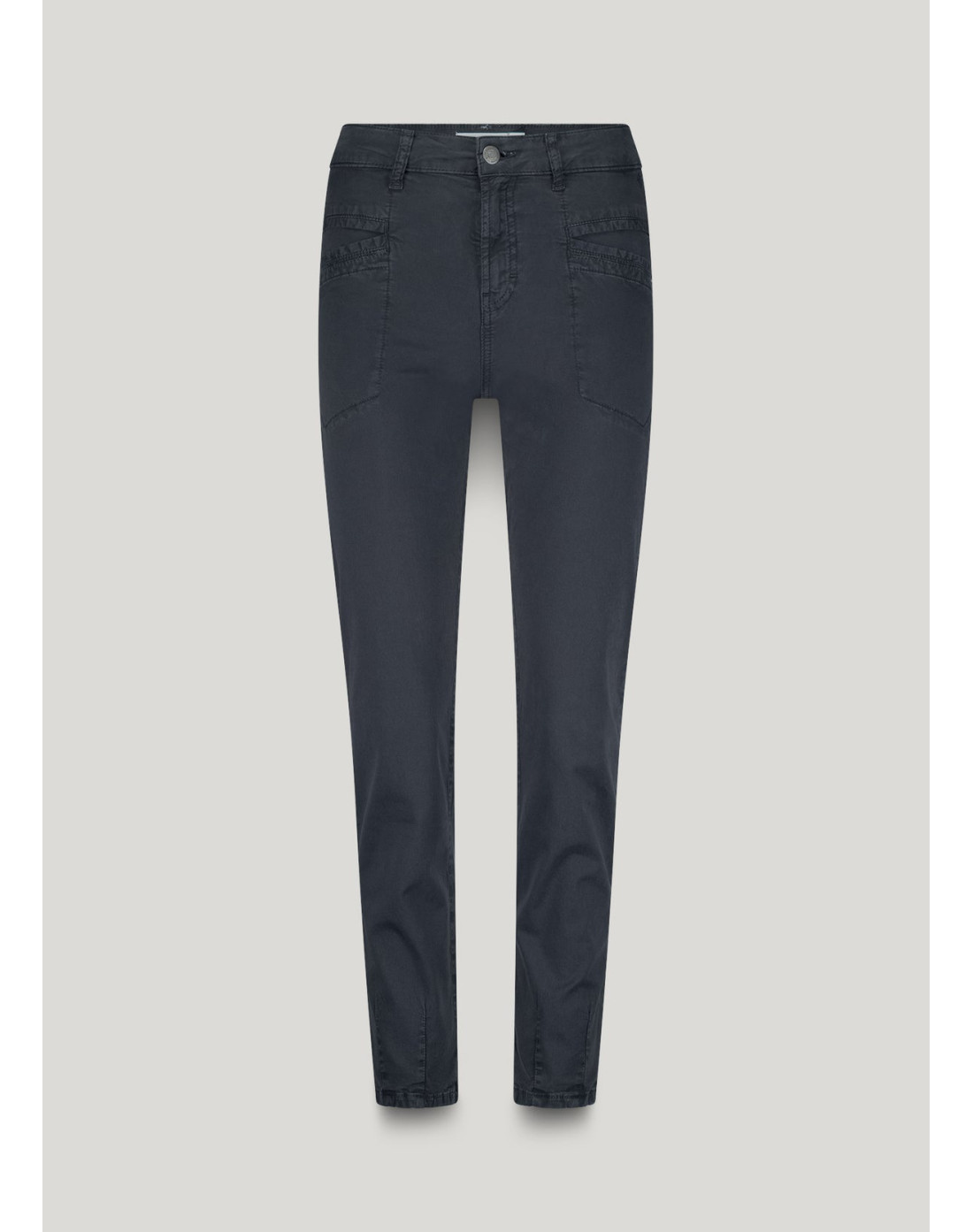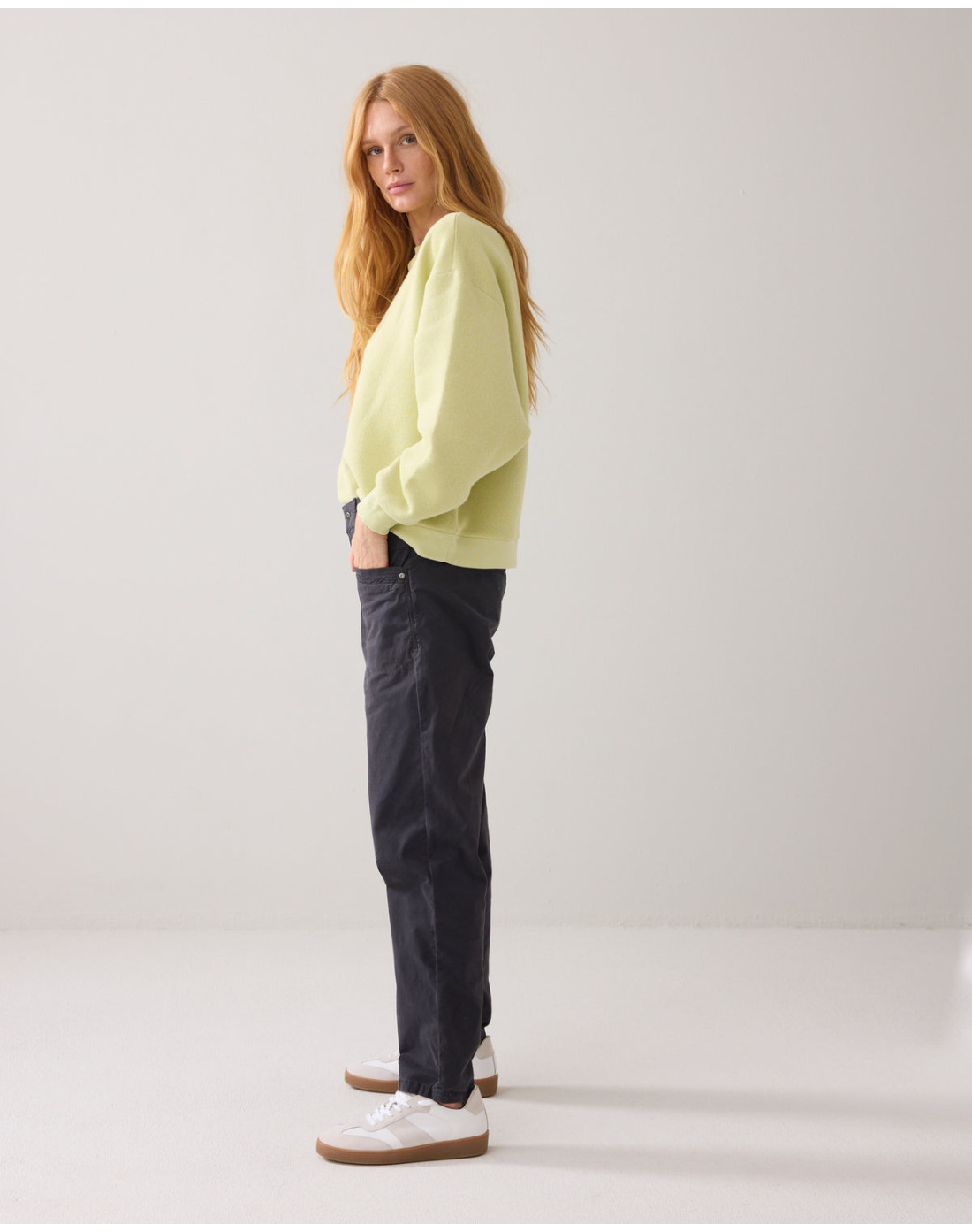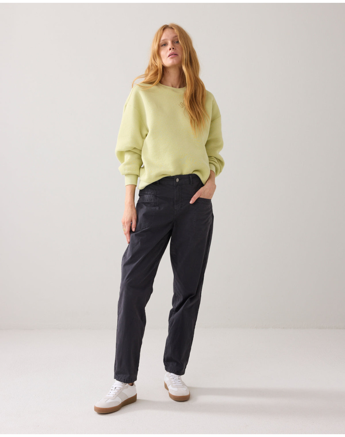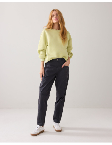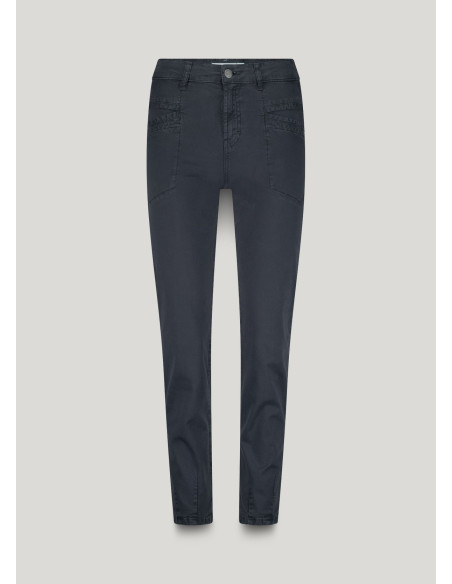 • Cintura media • Corte cónico • Acabado melocotón • Bolsillos estilo trabajador