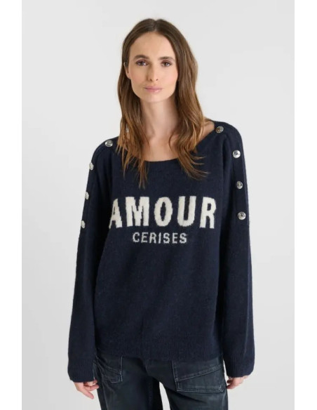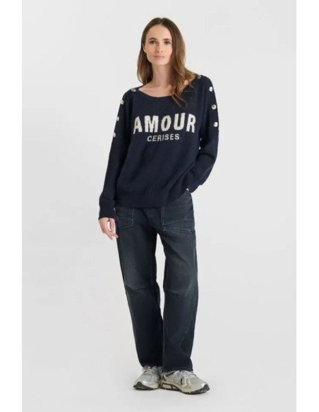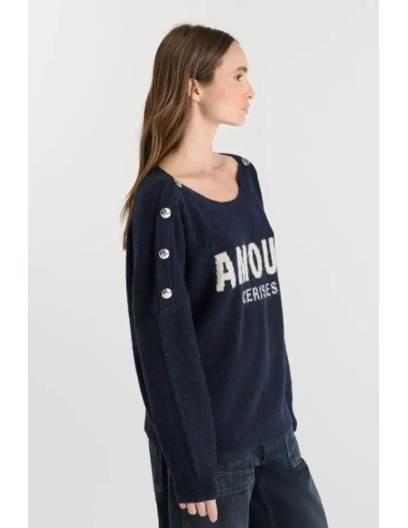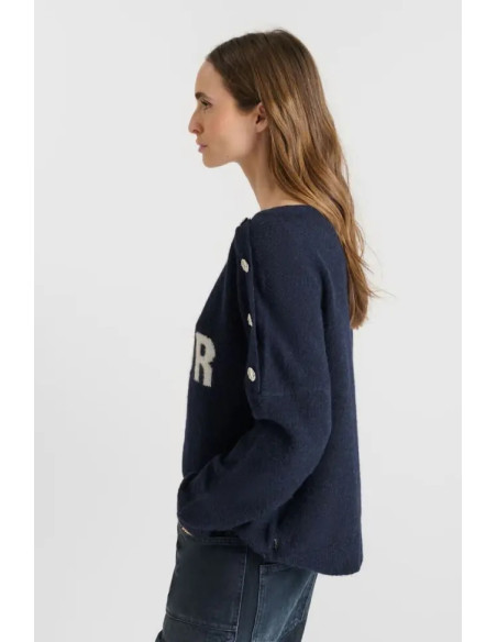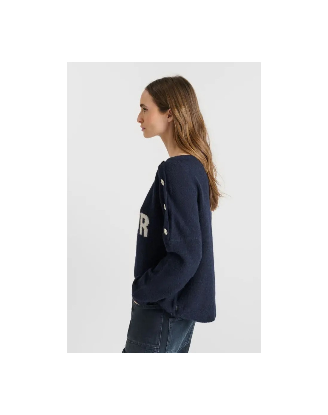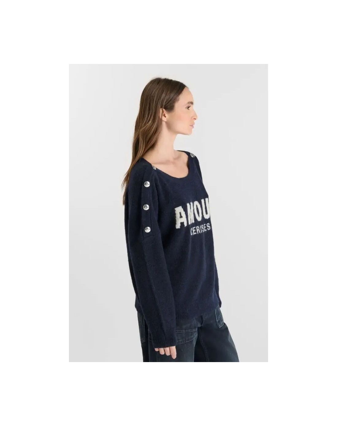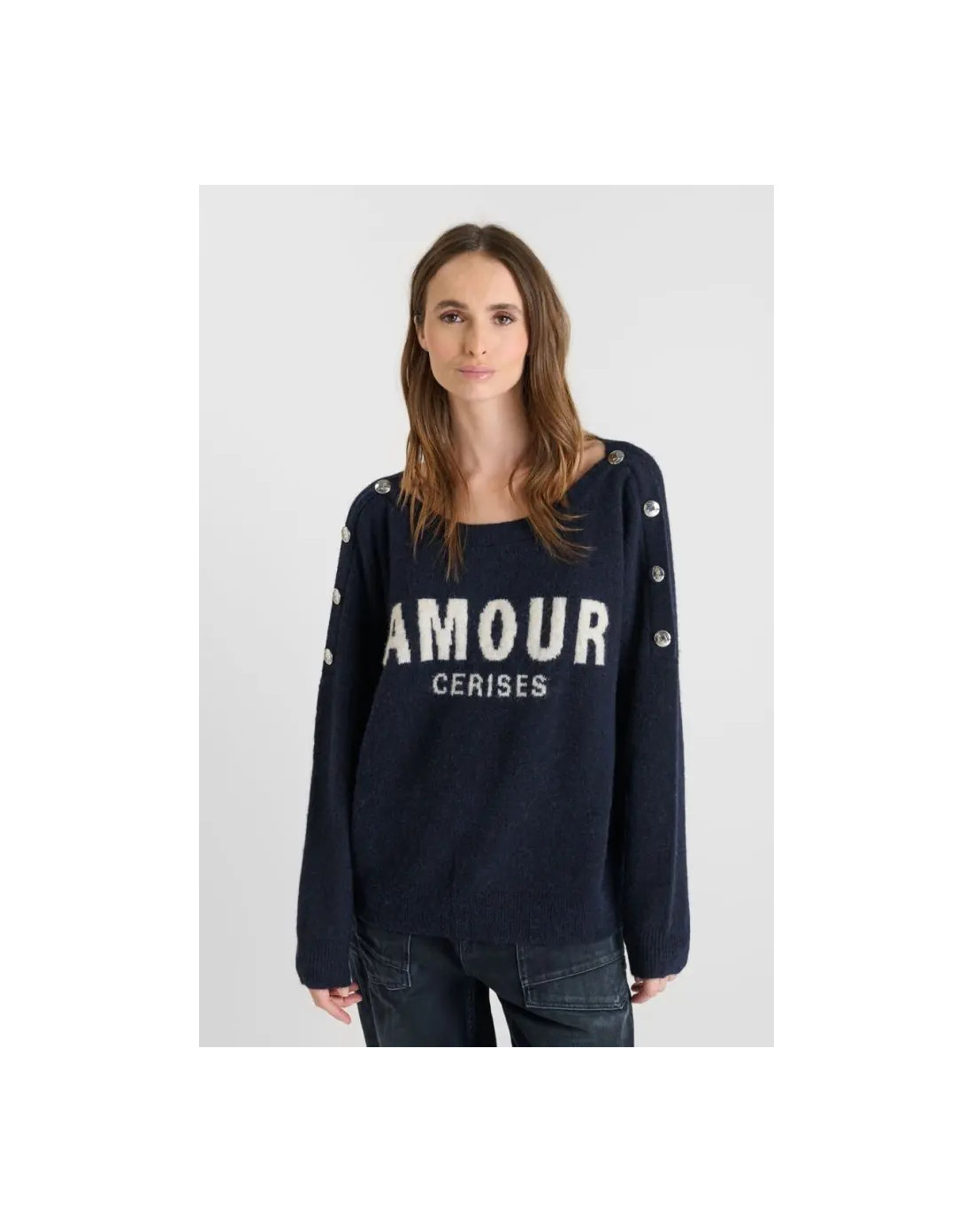 - Cuello redondo - Corte: recto - Tipo de cierre: abotonado - Mangas largas - Puños: bordes acanalados - Espesor de la malla: malla grande - Patrón: patrón en la parte delantera - Estilo de moda: casual