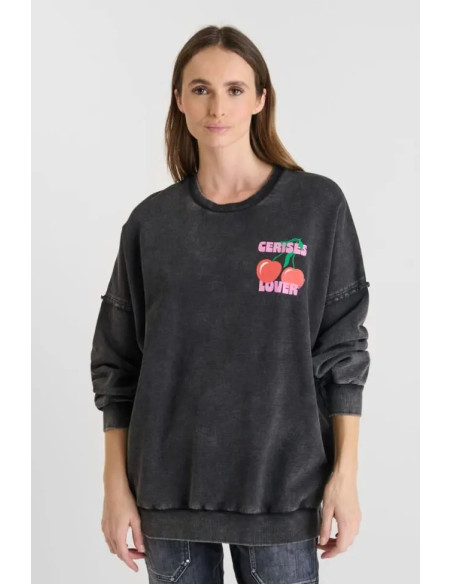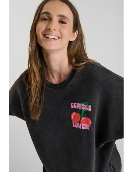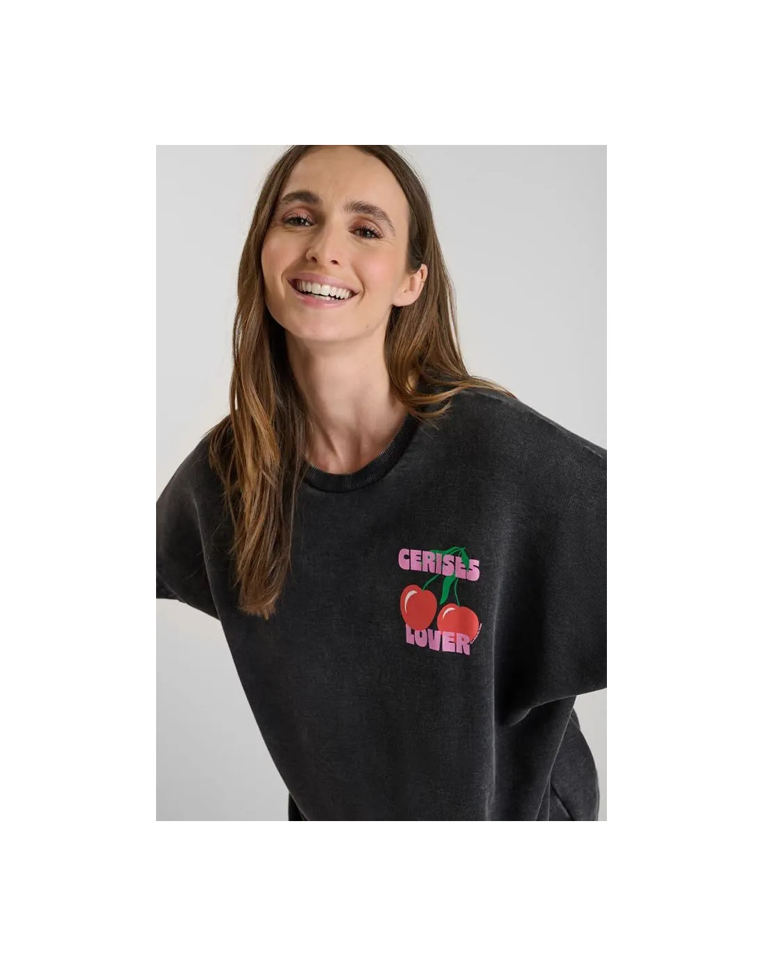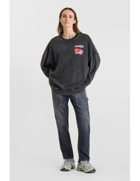 - Cuello redondo - Ajuste: novio, suelto - Mangas largas - Puños: bordes acanalados - Espesor de la malla: malla fina - Patrón: estampado - Estilo de moda: casual