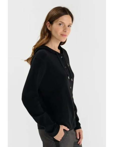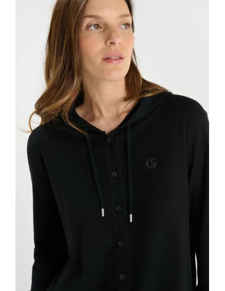 - Capucha - Corte: recto - Tipo de cierre: abotonado - Mangas largas - Tipo de chaqueta: casual - Patrón: liso