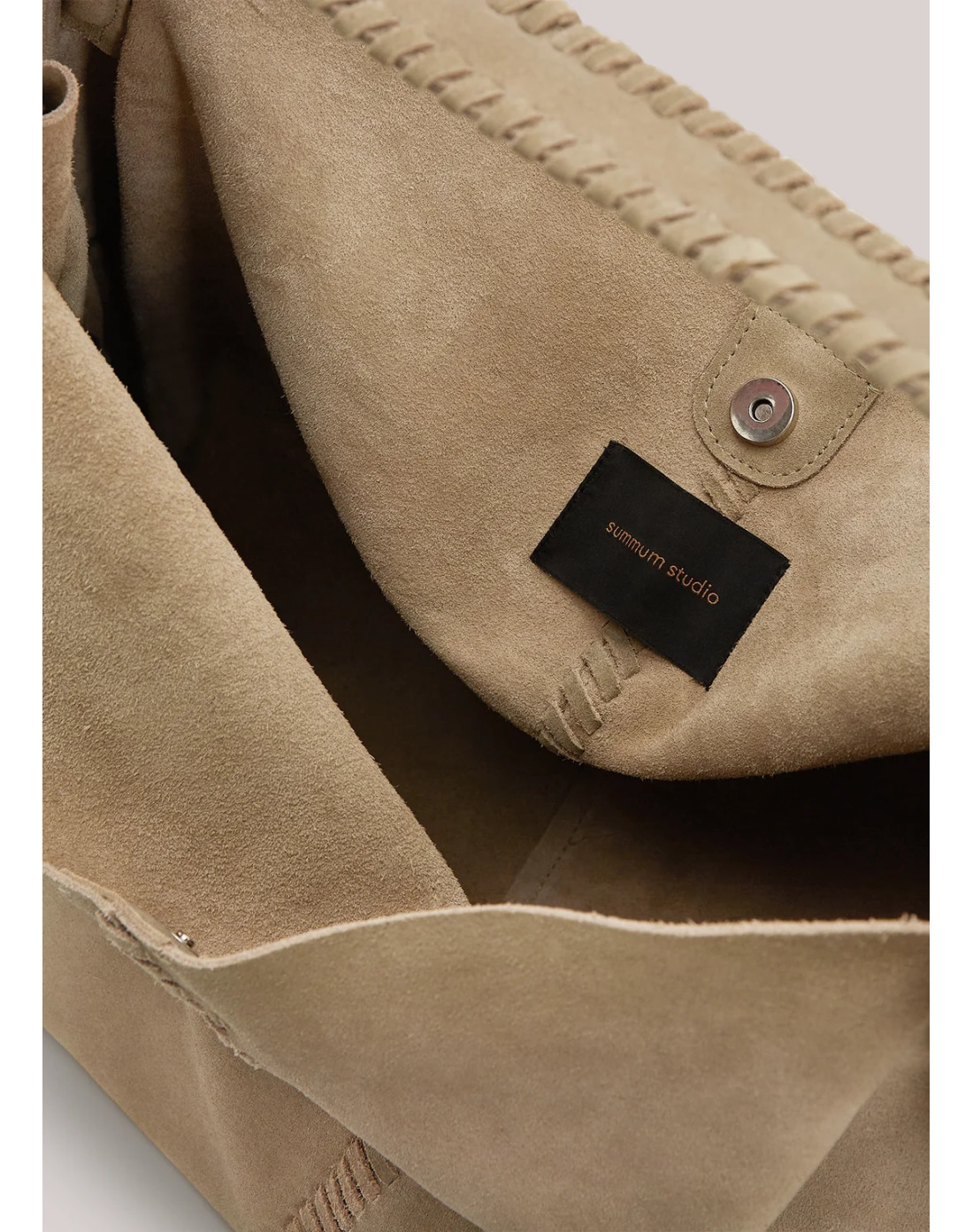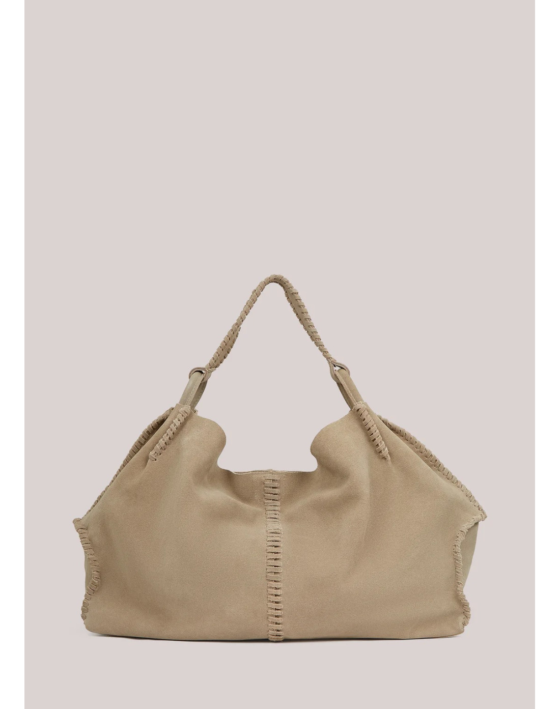 Lujoso bolso de ante con tejido de rica textura y sutiles detalles tipo chaleco. Este artículo tiene una forma suave y un estilo atemporal. • Ante auténtico • Detalles tipo chaleco • Forma suave y espaciosa • Acabado lujoso